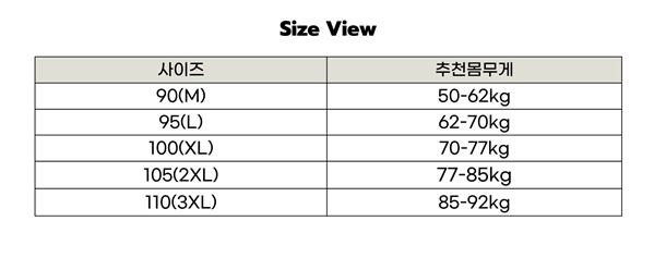 90(M),95(L),100(XL),105(2XL),110(3XL)